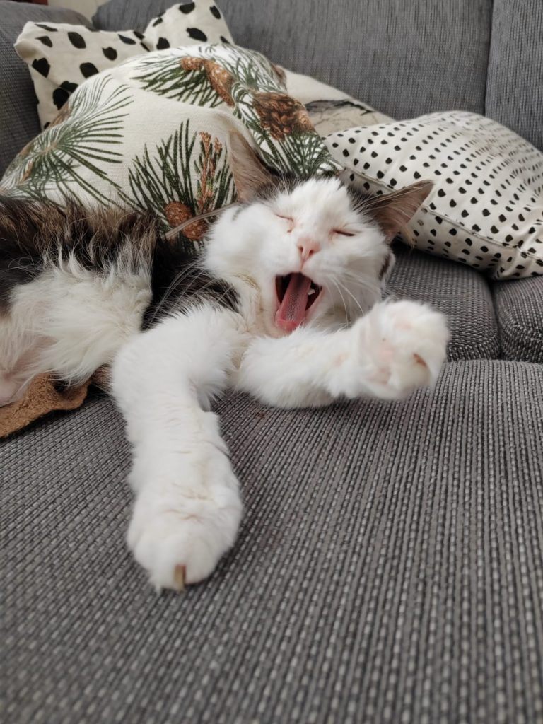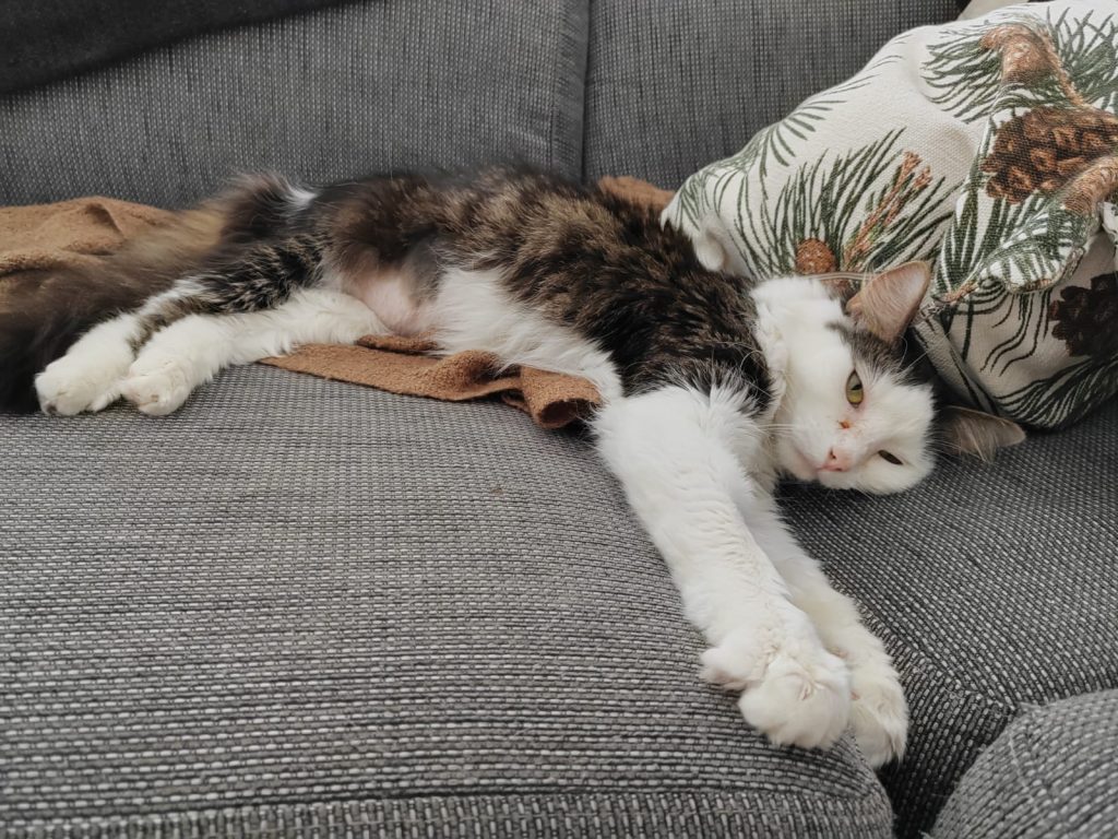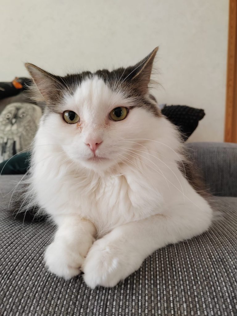 Vaikka olenkin näin mahdottoman komea ja turkkinikin mitä upein, on minulla pari vaivaa, jotka tulevan kodin olisi otettava huomioon. Minulla on krooninen silmätulehdus ja välillä silmäni rähmivätkin kunnolla. Silloin ollaan yhdessä sijaiskodin ihmisen kanssa putsailtu silmiä varovasti. Minulla on myös ollut massamuutos suolistossa, joka uusiutuu ilman kortisonilääkitystä. Minun on siis syötävä kortisonia päivittäin lopun ikääni. Lääkettä ei mene suurta määrää ja syön sen mielelläni ruokaan sekoitettuna. Lääkärillä on käytävä vähintään kerran vuodessa, jotta pysytään perillä voinnistani. Vatsa ongelmastani on hyvin dokumentteja saatavilla ja sijaiskodin ihminen kertoo mielellään lisää minusta.